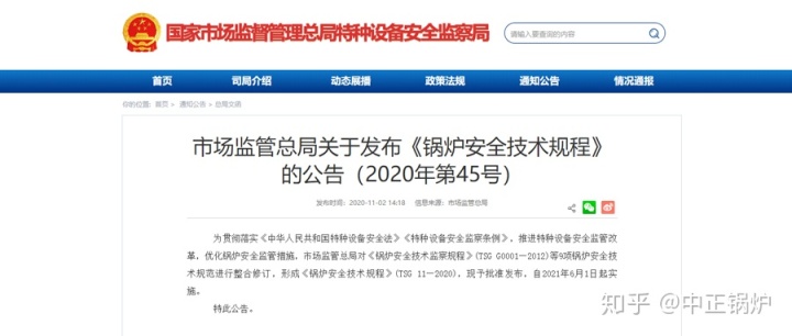 近日,国家市场监管总局发布了关于《锅炉安全技术规程》(简称《锅规》)的公告,该规程将《锅炉安全技术监察规程》(TSG G0001- -2012)、《锅炉设计文件鉴定管理规则》(TSG G1001- -2004)、《燃油(气)燃烧器安全技术规则》(TSG ZB001-2008)、《 燃油(气)燃烧器型式试验规则》(TSG ZB002- -2008) 、《 锅炉化学清洗规则》(TSG G5003- -2008)、《锅炉水(介)质处理监督管理规则》(TSG G5001-2010)、《锅炉水(介)质处理检验规则》(TSG G5002- -2010)、 《 锅炉监督检验规则》(TSGG7001- -2015)、《锅炉定期检验规则》(TSG G7002- -2015) 等九个锅炉相关安全技术规范进行整合,形成锅炉的综合技术规范。