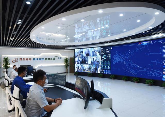 天津能源集团旗下企业天津市热电有限公司工作人员在热网调度中心监测设备运行。(采访对象供图)