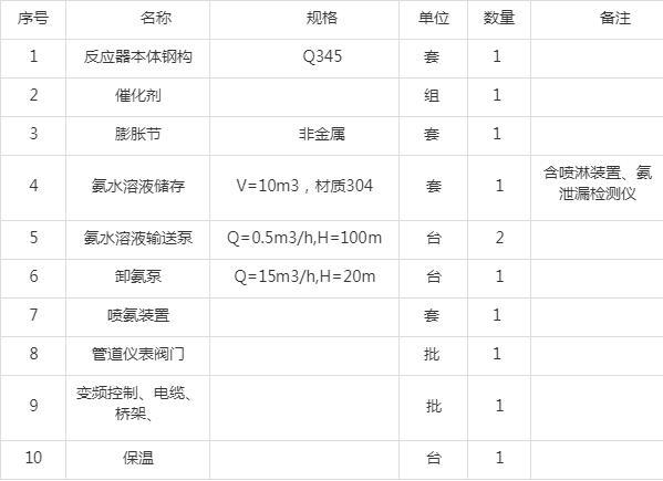 脱硝剂储存输送系统,雾化喷射系统,SCR反应器钢构系统,催化剂系统,烟道系统,电气仪表控制系统。