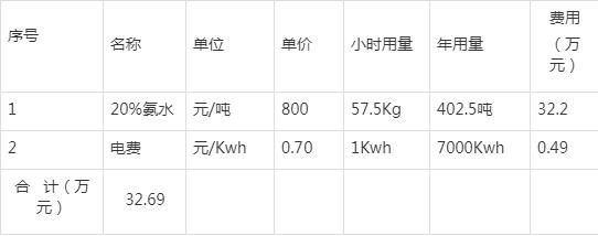 五、加热炉SCR脱硝运行费用:(年运行7000小时)