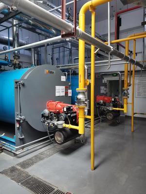 富尔顿立式设计的整装电蒸汽锅炉按照ASME (美国机械工程师协会)的标准和规范制造。因为加热元件完全浸没在水中并且压力容器安全绝热,所以富尔顿电锅炉的热效率非常高,辐射散热损失能降到较低。经过精密设计计算,能使锅炉迅速、高效地达到工作温度。电锅炉不像传统锅炉会有部分燃料从烟道排出,造成浪费,而且电锅炉更符合环保的要求,不会向大气排放NOx (氮氧化合物)