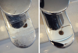 大家可以看看,柠檬酸除垢剂使用之后的效果真的非常神奇,不管是多么严重的水垢都能够清除干净!柠檬酸除垢剂不仅可以去除卫生间的水垢,还可以用来清洗花洒,地板,饮水机。将柠檬酸除垢剂静置10分钟左右,再用清水冲净即可。