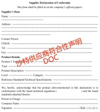 SABER清关平台---认证要求 :DOC (供应商符合性声明)+SABER/SC