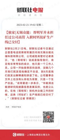 昨日晚上7点多,财联社的消息显示,无锡众能也认同清能院的信息,表示胥明军名不副实。