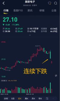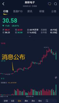 今天早上,奥联电子开盘继续暴跌16.8%,股价从高位45.2元的下跌幅度已经超过40%。