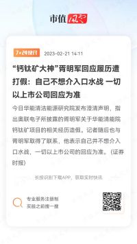 而在昨天上午10点52分,华能清洁能源研究院发布澄清声明,称回复函的相关内容严重失实,胥明军未曾受邀到访华能清能院,也未曾参与华能清能院钙钛矿中试线的任何设备调试和工艺研究,公司与其个人亦无任何业务往来。