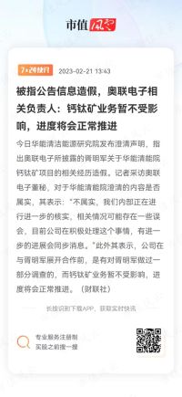奥联电子的回复函声称,与奥联电子合作的胥明军是钙钛矿产业专家,有在众能光储工作的产业经历。