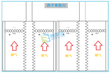 废气中二氧化硫在氨气存在的情况下,由高速电子束撞击提供能量,快速反应生成硫酸铵颗粒,随水滴沉降到除雾器底部排出。废气中的氨氧化物,由高速电子束提供能量,快速与氨气发生还原反应,被还原成氨气达到脱硝作用,生成副产物水。废气中的其他大分子有机物(二噁英、臭气、VOCs气体等),在高速离子束撞击下分解为水和二氧化碳等,达到除臭、裂解二噁英的作用。高压放电形成离子状态,去除污染物和颗粒物、除湿达到烟气消白效果。