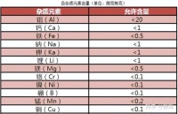 光伏用高纯石英砂、超细石英粉的外观应为具有一定透明度的白色颗粒且无异色;光伏用高纯石英砂的粒度粒径范围应在70-350μm内,且在该粒径范围的累积质量分数应大于或等于90%,粒径小于100μm或大于300μm的累积质量分数均应小于1%,一句话,粒度分布需要一致性和一定形体整形保证;光伏用高纯石英砂、超细石英粉中二氧化硅含量应大于或等于99.99%,灼烧失量应小于或等于0.01%;光伏用高纯石英砂、超细石英粉的核心问题是杂质,杂质含量超标的光伏石英坩埚高温强度低,易发形,发形后的光伏石英坩埚在拉晶过程中随着埚位的上升,石英坩埚发形的凸出部分极有可能碰撞到寻流筒,轻则影响正常拉晶,严重时将无法拉晶,杂质含量过高,往往还会带来石英坩埚在本体上的析晶,光伏用高纯石英砂、超细石英粉中杂质元素总含量应小于或等于25μg/g,其中钾、锂、钠含量总和小于2.5μg/g,铁小于0.5μg/g,铝小于20μg/g,钙小于1μg/g等等,允许各种杂质元素含量见下表。
