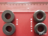在威海圆环先进陶瓷股份有限公司展厅,可以看到连续工作近十年的氮化硅研磨球柱结合体、氮化硅陶瓷磨介环2种氮化硅陶瓷磨介,将2个氮化硅研磨球柱结合体、氮化硅研磨圈与未工作的磨介对比(如上图),可以发现工作近十年的氮化硅研磨球柱结合体、氮化硅陶瓷磨介环除了表明变得光滑一些,还有棱角没那么分明以外,氮化硅研磨球柱结合体、氮化硅陶瓷磨介环的大小并没有太大明显的变化。氮化硅陶瓷磨介环虽然生产制造成本高一些,但是从氮化硅陶瓷磨介环近20年全寿命周期生产使用成本优势来计算,氮化硅陶瓷磨介环的经济性也是具有相当的优势。