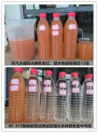 BF-31T凝结水系统保护剂覆膜速度快,防腐效能高,凝水水质铁离子(全铁指标)72小时内迅速达标,为药剂试用实验提供了便捷。可完全替代除氧器、除氧剂以及高温过滤除铁设备使用。