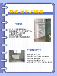 暖气片也是要受到腐蚀的,因此如果要在卫生间安装暖气片,不建议安装在淋浴区域 ️,避免暖气片被腐蚀。建议安装位置马桶上面或旁边。