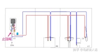 我们看这张两用炉生活热水的示意图,在冷水管路A点接两用炉,生产生活热水,供应至远端B点。同时自来水也伴随前往,从A点到B点供应冷水。 A到B的热水管段有一定水容量,B仅使用冷水时,冷水管路压力降低,热水管路中的水瞬间从B点到A点出现倒流,壁挂炉冷水入口处水流开关或流量传感器感知到这个倒流的水流,从而启动壁挂炉进入热水工况,点火燃烧。这种倒流可能会由于热水管道中水被加热,热胀冷缩,而被加大。