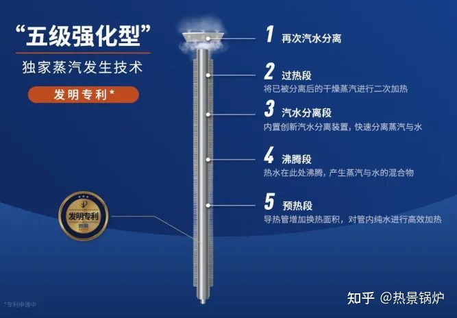 “五级强化型”蒸汽发生技术:炉体采用独家专利技术,每根换热管内设置导热杆,不仅强化换热,同时大幅降低炉体的水容积。在水容积小于30L的情况下,30S急速产汽,蒸汽干度高达98%,产1吨足额蒸汽消耗天然气低至75m³,氮氧化物排放低于30mg/m³。