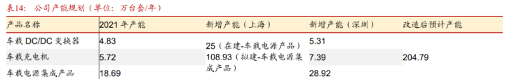 上海、深圳双中心布局,全国市场有望加速覆盖。2021年公司募资在上海建设新能源车智能化产线建设项目,预计建设周期为1.5年,预计2023年内投产,达产后年产25万套车载电源产品,提升新能源车载电源智能化水平,实现深圳、上海双总部,有效快速使公司业务在覆盖华南、华东市场的基础上辐射全国。