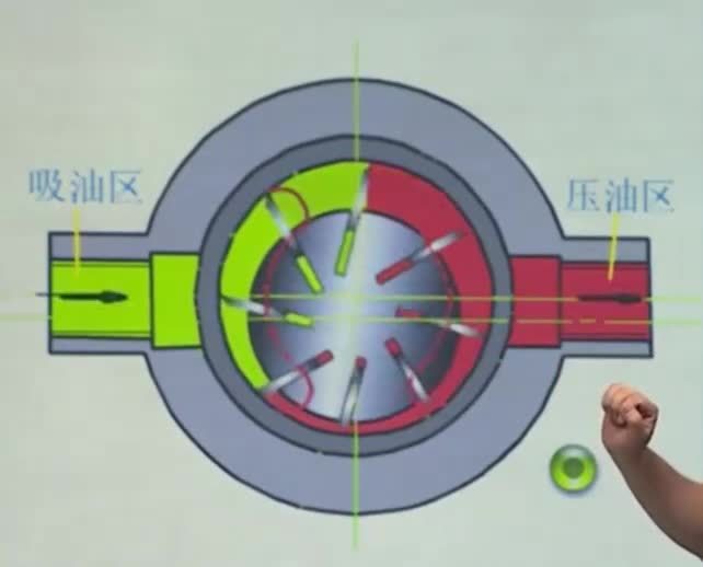 (1)双作用叶片泵:转子每旋转一周,密封工作腔完成两次吸排油过程;该型泵的两个吸油腔和排油腔对称布置,作用在转子上的液压力相互平衡,因此也称平衡式液压泵;