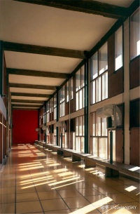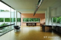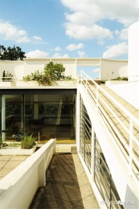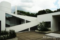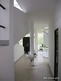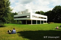 萨伏伊别墅是现代主义的经典作品之一,位于巴黎近郊的普瓦西(Poissy),设计于1928年,1930年建成,适用钢筋混凝土结构。宅基为矩形,长约22.5米,宽为20米,共三层。底层三面透空,由支柱起,内有门厅,车库和仆人用房。二层为起居室,卧室,厨房,屋顶花园和一个半敞开的休息空间。三层为主人卧室和屋顶花园。