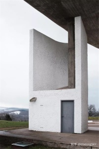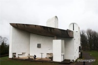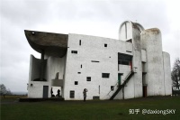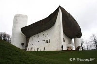 朗香教堂的白色幻象盘旋在欧圣母院朗香村之上,从13世纪以来,这里就是朝圣的地方。教堂规模不大,仅能容纳200余人,教堂前有一可容万人的场地,供宗教节日时来此朝拜的教徒使用。朗香教堂的现代感如此具有欺骗性,以致它看起来并不符合柯布西耶的审美理念或是国际风格中的任何一种;它更像坐落在场地中的一尊雕塑。