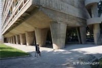 这幢公寓,就是外形方正,似乎略显沉重,但是外观钢筋水泥土的裸露的毛糙,展现了一种男人的力量。这是设计史上一个著名的化腐朽为神奇的范例。仿佛一只诺亚方舟,带着一个失落后的小世界。