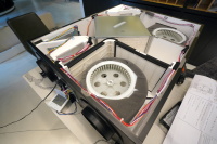 可以看到机身的顶盖打开也是覆了一层棉,用来消音和防止漏气。
