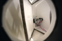 拧掉检修口的两颗螺丝,就可以打开,可以看到里面的热交换芯被一根金属条扣住,这样受力更好,也防止热交换芯直接砸下来。