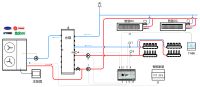 但偏偏一次系统没有这个办法,当开一台内机的时候,大部分流量都从旁通回来了,因为完全没有进入室内,所以进回水温差一下就接近了,空调主机马上就停止工作,随着负荷一点点流失,主管道水温度变热之后,马上开始工作。