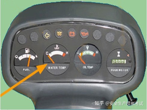 14、【单选题】场车仪表中的水温指示灯主要显示发动机内冷却液的温度,一般用符号()表示。( C )