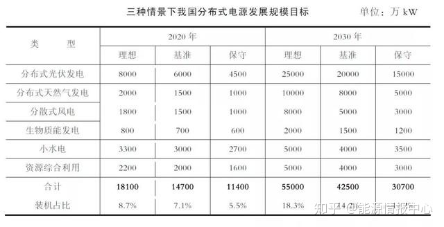 根据国家《能源发展“十三五”规划》《2014—2020 年能源行动计划》《可再生能源发展“十三五”规划》《电力发展“十三五”规划》相关内容,2020 年分布式光伏发电、分布式天然气发电开发规模达到国家规划目标,2030 年分布式光伏发电、分布式天然气发电开发规模应满足实现国家战略目标的要求;分散式风电、生物质能发电、小水电和资源综合利用开发规模达到相关规划或资源量约束目标。