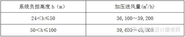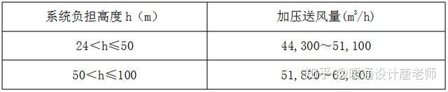 3、表中风量的选取应按建筑高度或层数、风道材料、防火门漏风量等因素综合确定;