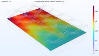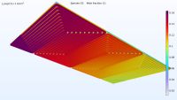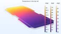 电池的功耗如图11所示。该图显示了电池中发热的分布。可以看到,最重要的热源是在膜中,这是由于膜的导电性差导致的。此外,我们可以看到在膨胀网格与阴极接触的位置产生了大量的热量。在这里,电极的导电性相对较差(与集流体相比),而电流密度很高。