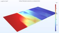 如果我们观察氢气流道和膜中的水活度,可以看到水活度在靠近进气口的地方更大。在这个位置的气相中氧含量很高,氧气传输限制了反应速率,导致局部电流密度更高。我们还可以看到,膜电导率在水活度大的位置更为明显,这会影响电池在电池中的电流密度分布。氧气和水含量使电流密度增加,直到阴极气体扩散电极中的液态水含量开始阻碍气体传输。