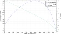 图2.在 0.6 V 的电池电压下,阳极处的氢摩尔分数(上)和阴极的氧摩尔分数(中间)图,各成分显示在气体通道和气体扩散电极中。电解液中的电流密度分布(下)表明,空气馈入限制了电池的性能,导致进气口位置的电流密度很高。图3显示,图2中运行条件下的最大功率电流密度略低于 1800 A/m^2(下图,导致最大功率略低于 1150 W/m^2。如果气流速率增加,最大功率密度会上升到 1300 W/m^2(下图)。如果我们绘制电解质中的电流密度分布,会看到它更加均匀。然而,这种性能的提高必须与气泵所需的功率相平衡,气泵必须提供高出 50% 的压力。