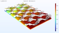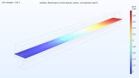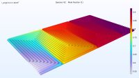 在这个模型中,值得研究的方面是电堆中可能发生的成分、温度和电流密度分布的变化。这些方面取决于双极板和膜电极组件的几何形状。它们还可能取决于堆叠中包含的基本单元数量。该模型允许我们使用具有反映气体流道结构的各向异性特性的多孔介质方法处理气体流道的几何形状。通过将这种方法与气体流道的完整描述进行比较,我们可以验证其准确性。这种方法的好处是,它提供了良好的准确性(取决于目的),同时大大降低了计算成本(CPU 时间和内存要求)。下面将展示这个模型的结果,你可以通过 COMSOL 案例库下载其 PDF 说明和 MPH 文件来尝试模拟。