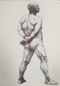 接着在作业里我除了什么塑造、体积之外,还会考虑构图选取特别一点的角度、把空间虚实夸张,把光影关系表现的细腻微妙这些之类的。但当时有个同学的画让我印象深刻,那次画的是大卫的全身像,他的画面上远远看去好像只画了一些很浅的东西,但是走进看就看到他先是用铅笔画的是很细很长却很放松的、弯弯曲曲的线,组成了一个动态依然很稳的大卫剪影,因为他画的是背光角度。然后上面的明暗关系是用彩铅的红黄蓝画了之后擦揉出来的,在半开的纸上他画的整个大卫高度其实连4开纸的长都不到,画面大量的留白。明明是素描,他却用了彩铅;明明是背光,却画的很浅很淡;明明是半开的纸,却画的不足4k大小。而最后这三点加上他那些像弄散的毛球细线一样的笔触,综合起来的感受就是:画的明明是一座石膏,却仿佛在脑海里回忆起花园里,阳光下,远远看见的一个在天真玩耍的孩童。(实在可惜的是当年拍的这个照片也早就随着我的手机更迭遗失了)