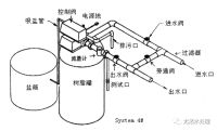 (3)吸盐:将盐水注入树脂罐体的过程,传统设备是采用盐泵将盐水注入,全自动的设备是采用专用的内置喷射器将盐水吸入(只要进水有一定的压力即 可)。在实际工作过程中,盐水以较慢的速度流过树脂的再生效果比单纯用盐水浸泡树脂的效果好,所以软化水设备都是采用盐水慢速流过树脂的方法再生,这个过 程一般需要30-60分钟左右,实际时间受用盐量(树脂体积)等的影响。