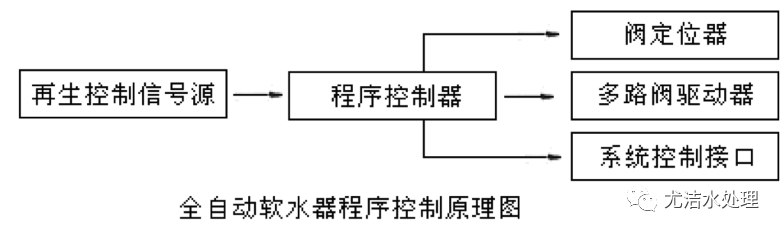 利用控制面板上的马达带动活塞在相应的位置,使设备处于相应的步骤上,从而实现自动运行、再生的步骤。程序控制器根据再生控制信号源(时间或流量)来启动再生程序,并向多路阀驱动器发出动作指令,通过阀定位器来控制活塞的动作位置,从而来改变水流方向,自动完成软水器的所有工作过程。