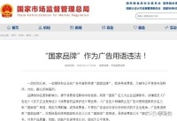 1月19日,“国家品牌计划”因违反广告法被叫停,含有“国家级”广告语都将被严查。