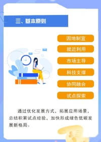 按照因地制宜、就近利用、市场主导、科技支撑、协同融合、试点探索6大基础原则,通过优化发展方式,拓展应用场景总结积累试点经验,加快形成绿色低碳发展新格局。