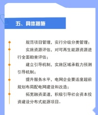 具体措施方面,山西省要求,规范项目管理,实施分级分类管理;实施资源评估,对可再生能源资源进行全面勘查评估;建立引导机制,实施区域承载力预测引导机制;提升服务水平,电网企业要适度超前规划布局配电网建设和改造;拓宽融资渠道,积极引导社会资本投资建设分布式能源项目。