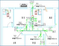 ①卫生间:新风套管应满足新风机贴顶板安装,高度控制在板下200mm范围内,并避开浴霸灯具安装位置,套管中心距顶板宜为100mm。