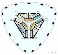 由于体形的变化,有些建筑物越往上越小,核心筒按分区逐区消减当然也是可行的。但是容易造成核心筒各向刚度不均衡,引起偏心。应该设法使它能够以中心为基点整体缩小,就像剥了一层“年轮”,面积减少了但依然是居中布置,各向刚度保持一致。