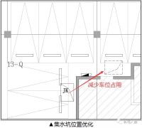 停车区域集水坑设置应尽量设置在边角位置以及车位尾部,数量合理,减少对停车和设备检修的影响,避免同时占据多个车位;若无法满足,可设置在两柱中间位置,只预留600检修口;避免集水坑立管与阀门影响停车。