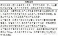 (二)报警阀结构检查:阀体上应设有放水口,其直径不应小于20mm;阀体的阀瓣组件的供水侧应设有在不开启阀门的情况下测试报警装置的测试管路;