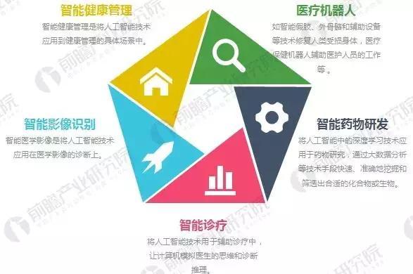 从全球创业公司实践的情况来看,智能医疗的具体应用包括洞察与风险管理、医学研究、医学影像与诊断、生活方式管理与监督、精神健康、护理、急救室与医院管理、药物挖掘、虚拟助理、可穿戴设备以及其他。总结来看,人工智能技术在医疗领域的应用主要集中于以下五个领域。