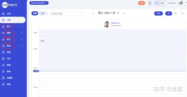 登录后,您可以开始添加您的客户、服务、员工,并在您的账户中编辑一切其他功能。此外,Wemero还具有产品销售功能,为商业主拓宽收入来源。