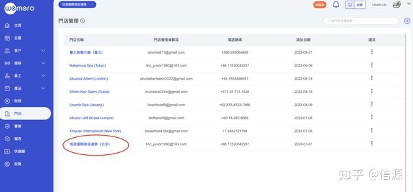当您从控制板上点击选择任意一家门店时,它将直接打开您的门店页面的链接(Wemero)