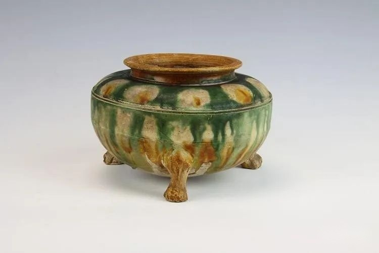 风炉,用铜或铁铸成,像古鼎的样子,壁厚三分,炉口上的边缘九分,炉多出的六分向内,其下虚空,抹以泥土。炉的下方有三只脚,铸上籕文,共二十一个字。一只脚上写"坎上巽下离于中",一只脚上写"体均五行去百疾"。一只脚上写"圣唐灭胡明年铸"。