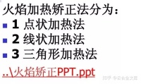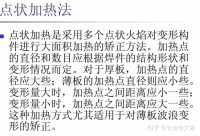 即利用不均匀的加热使结构获得反向的变形来补偿或抵消原来的焊接变形。加热矫正法的加热方法可分为点状加热、线状加热、三角形加热。加热矫正能消除很多施力矫正无法解决的变形,掌握火焰局部加热引起的变形的规律是做好矫正的关键,决定火焰矫正效果主要是加热的位置和加热温度。低碳钢和普通合金的焊接结构通常采用650~8000C的加热温度,一般不宜超过9000C。参见表2各种颜色可判别温度范围