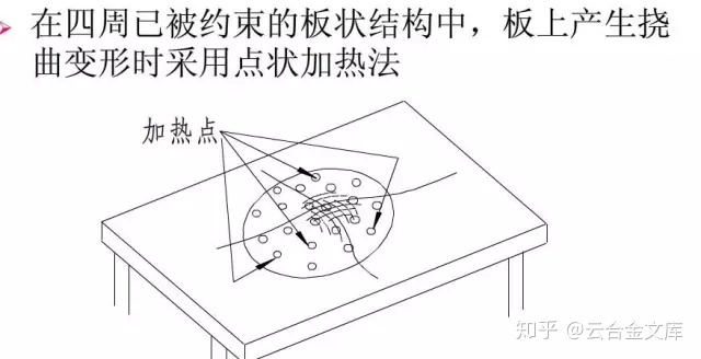 8)锤击焊缝法:此法主要适用于薄板的焊接。当薄板的焊缝及其热影响区还没有完全冷却时,立即对该区域进行锤击,对于厚板则用风枪敲击。