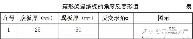 焊后弯曲的反变形,来达到防止焊后变形的目的。表1、图4分别为箱形柱、H型钢焊接前反变形参考数值: